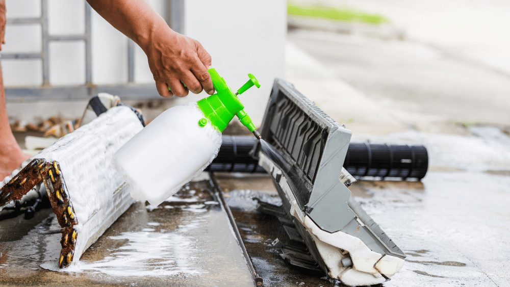 يتم تنظيف ملفات التبريد الداخلية والوحدة الخارجية باستخدام محلول تنظيف مخصص وأدوات مثل فرشاة ناعمة أو ضغط الماء. هذا يزيل الرواسب ويحسن كفاءة التبريد.